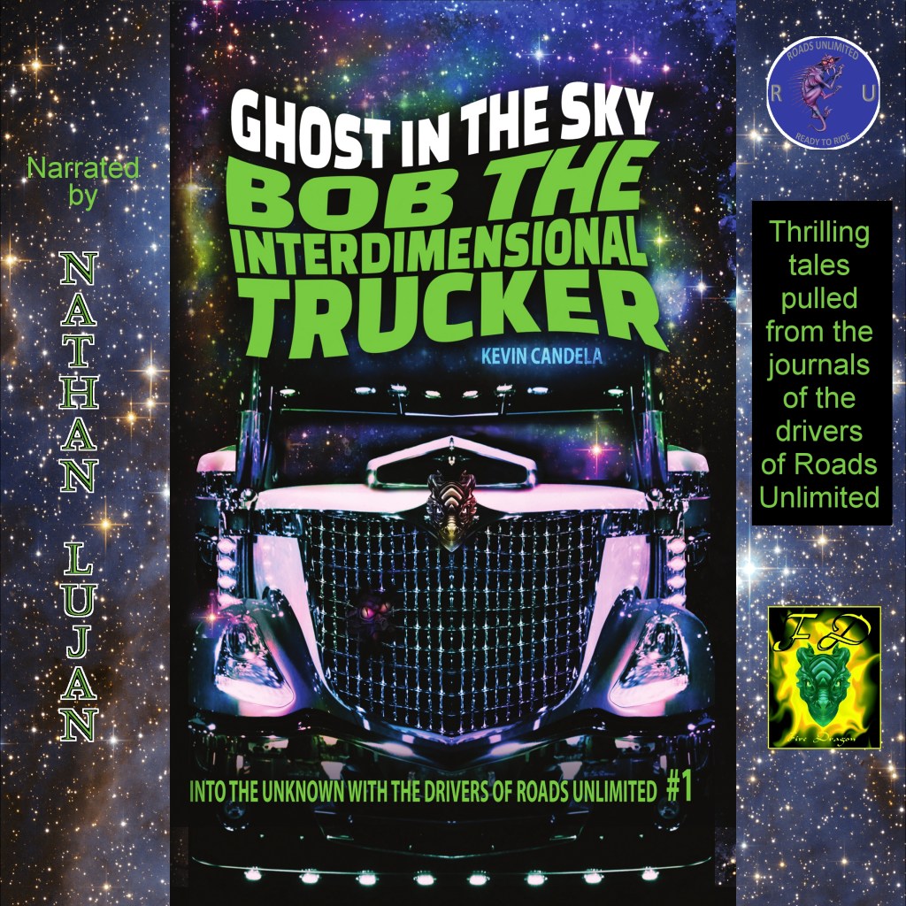 The drivers of Roads Unlimited are a special breed. Dealing with monsters, aliens, ghosts and other craziness tends to make for a pretty unusual set of skills–if one survives to develop them. Seven drivers feature in this ongoing series of mostly unconnected tales of the rolling “twilight zone,” where reality and the surreal often find themselves merged into the same lane. Join Sam Gage in the first installment, “Ghost in the Sky,” as he tries to figure out why the stranded motorist he picked up seems to come with a soundtrack–the drone of a small plane engine that appears to just be in Gage’s head. Next up, in “Shadow Legion,” Gage’s fellow driver Zep “ZC” Carter finds the mysterious moving carnival called “the Bizarre” that he’s been hearing about for years…or has it found him? And brand new on audio from the same great voice of Nathan Lujan, driver Aurora Hayes is stuck with a scary little monster hitchhiker–that guy in the Kendall R. Hart logo–and running from the monster’s deadly owner in “Diabala’s Messenger.”